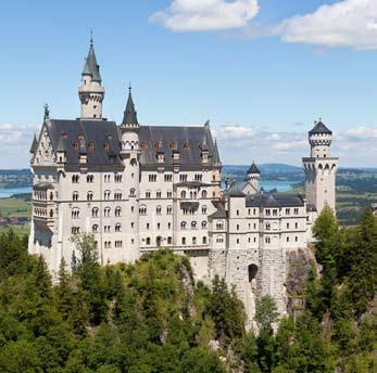Természetesen nem hagyhatjuk ki a II. Lajos által építtetett hatalmas neogótikus mesekastélyt, a Neuschwanstein kastélyt. A király számára ez a kastély a középkori kultúra és királyság emlékműve volt, amelyeket csodált és újra meg akart élni. Bár a kastély középkori stílusban épült és berendezett, kora legmodernebb technikáját alkalmazták benne. A kastély soha nem készült el teljesen, mert Lajos eladósodott. A sors fintora, hogy Lajos életében senkit nem engedett be a kastélyba, azóta viszont ez a világ egyik legismertebb és legtöbbet látogatott épülete.