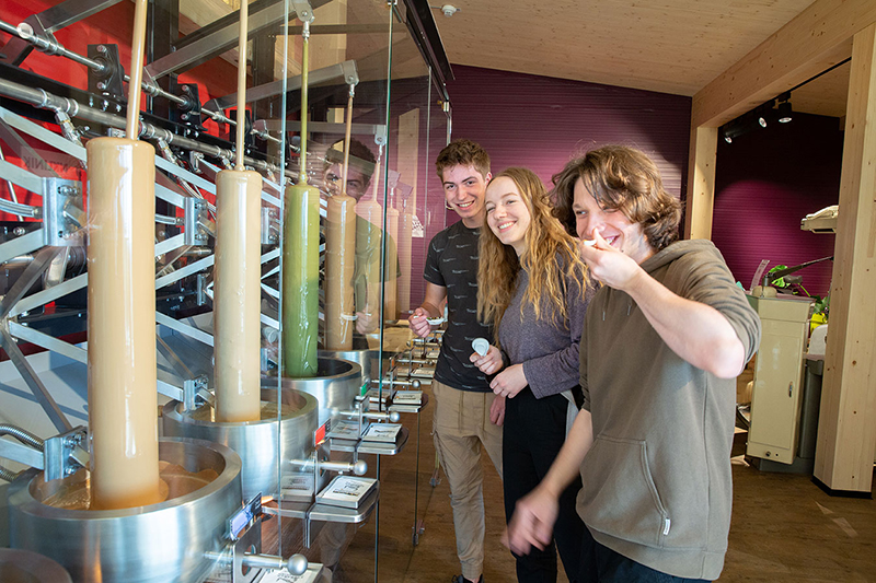 A várlátogatás után a ZOTTER csokoládégyár bemutató üzeméhez utazunk, ahol bepillantást nyerhetünk a csokigyártás kulisszatitkaiba. A kóstolóexpedícióhoz magyar nyelvű Audio Guide áll a látogatók rendelkezésére. A 90 perces vezetés alatt többször alkalom nyílik a kóstolásra is. A Schoko-Laden-Theater program állomásain nem fogunk unatkozni. Mini libegők szállítják a csoki italokat, óriás lemezjátszó prezentálja a csokitáblákat stb. Egy rövid bevezető és egy kisfilm megtekintése után az Audio-Guide használatával szabadon lehet felfedezni a Zotter csoki gyártását, és kóstolni a finom csokikat.
